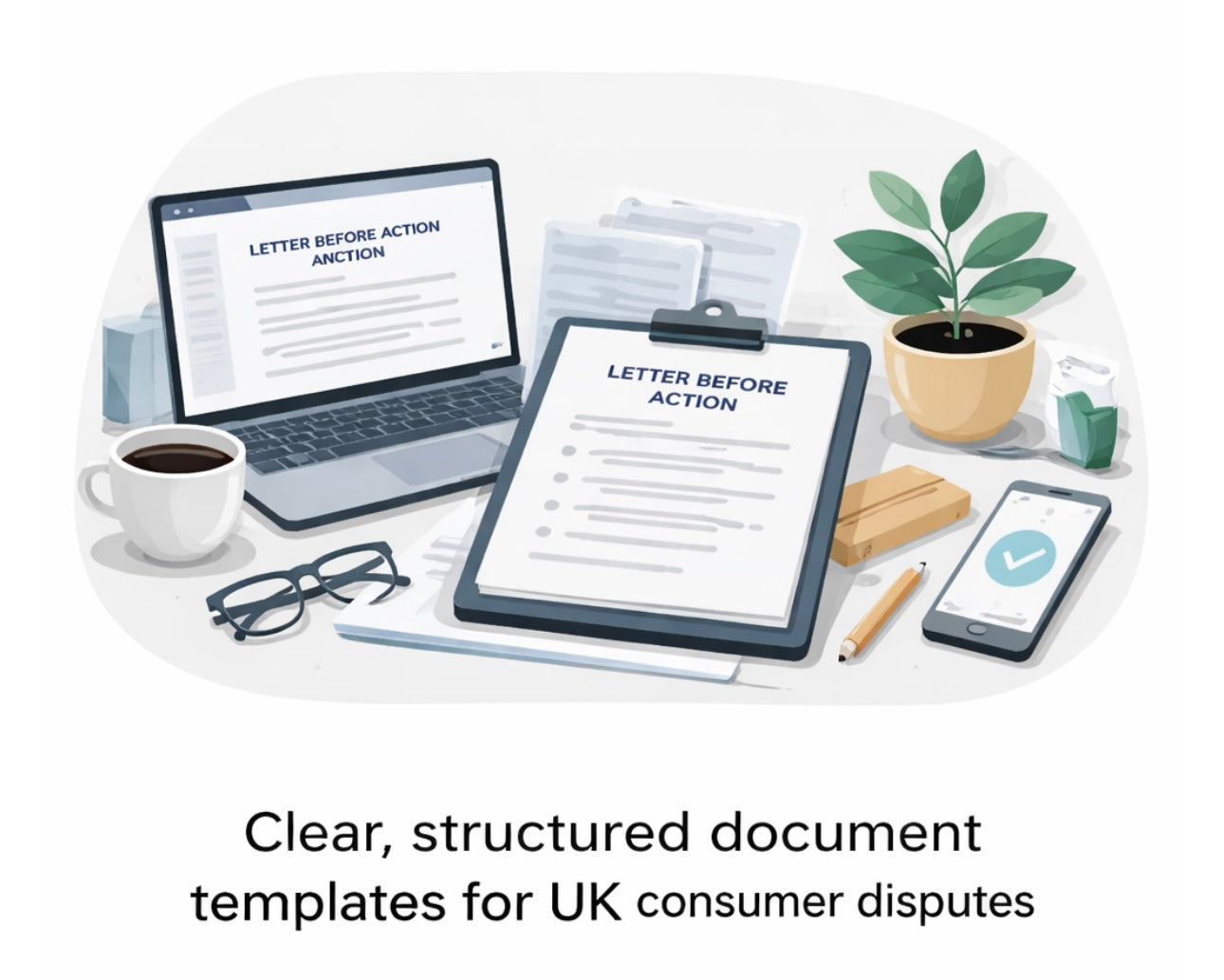 Download ready-to-use UK Letter Before Action templates designed for consumer disputes and small claims cases. Suitable for refunds, unpaid invoices, and contract breaches.